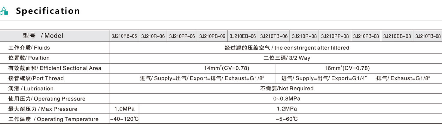 3J2 Series 3/2 Way Mechanical And Manual Valve