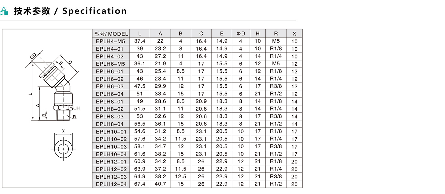 EPLH/APLH 45°型螺紋二通
