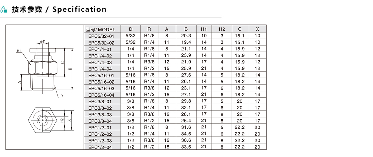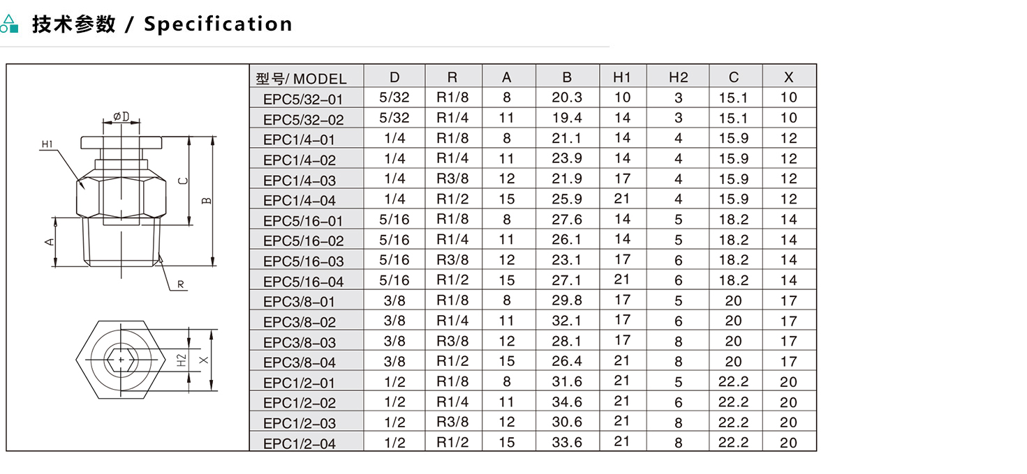 EPC/APC 螺紋直通